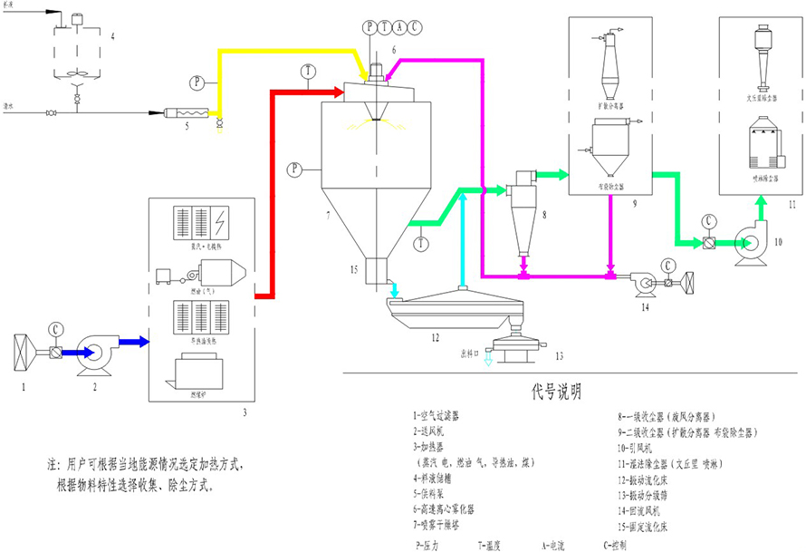 该设系列设备用于单一形式干燥设备达不到产品的质量要求,因此要把两种或两种以上的干燥形式的设备串联组合起了就可以达到产品质量要求。该设系列设备主要在食品行业内广泛使用如:椰子粉、咖啡、奶精、植脂末等。