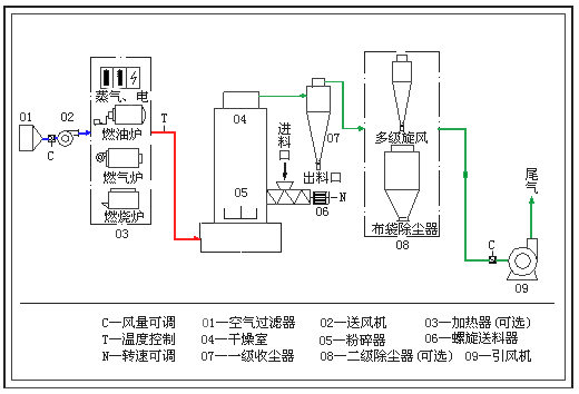该系列设备是总结了流化床、热破碎、旋流和分级技术的基础上,开发、设计的一种热效率高、适用范围广的新型干燥设备。